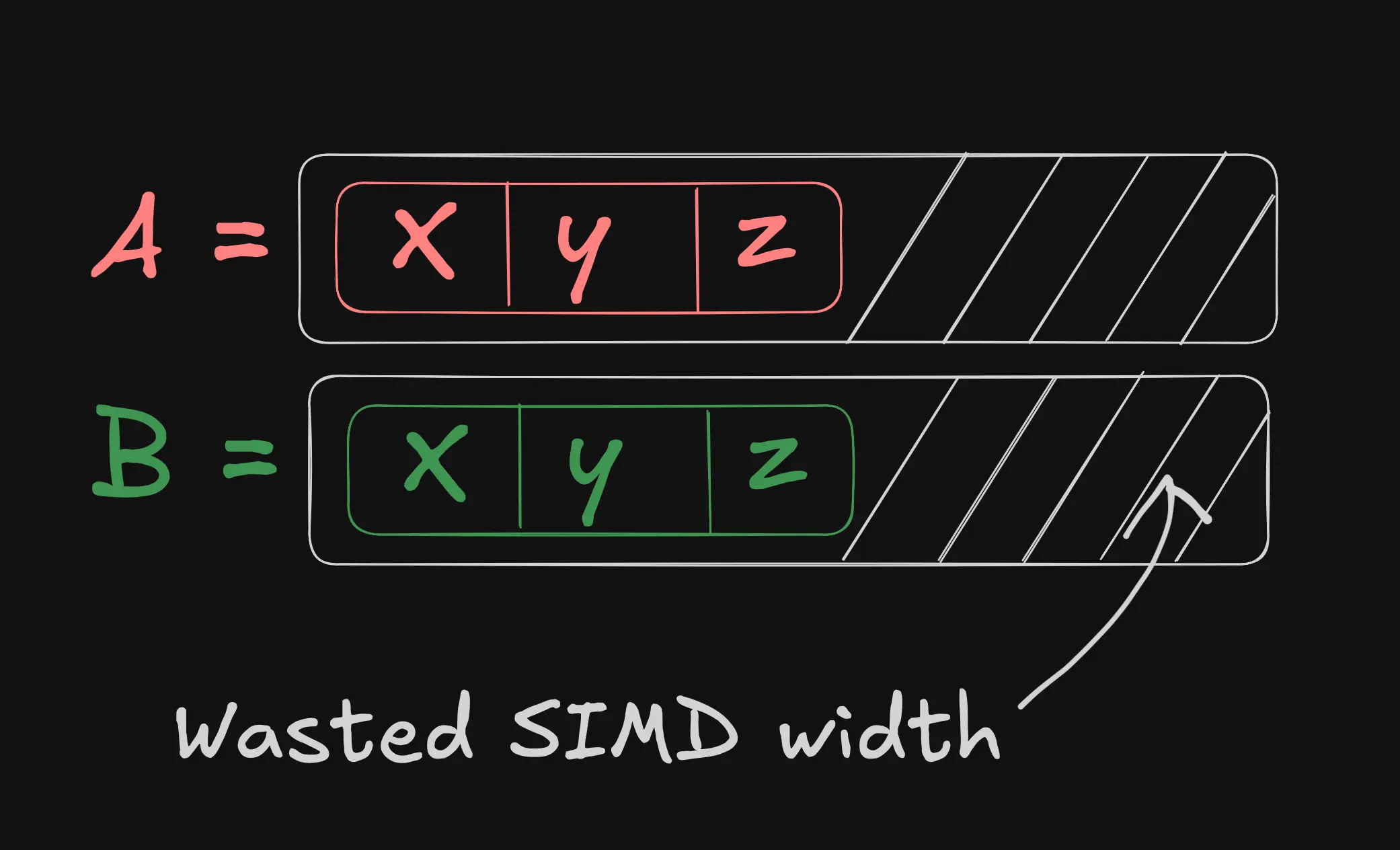 Finally, the purpose of the tag is for the CPU to branch on it. By having only one tag per batch of objects, the amount of branching the CPU has to do is dramatically reduced, which is a very good thing in itself—unpredictable branching slows down the CPU a lot. But what’s more, with branching out of the way, the processing is opened up for SIMD optimizations!